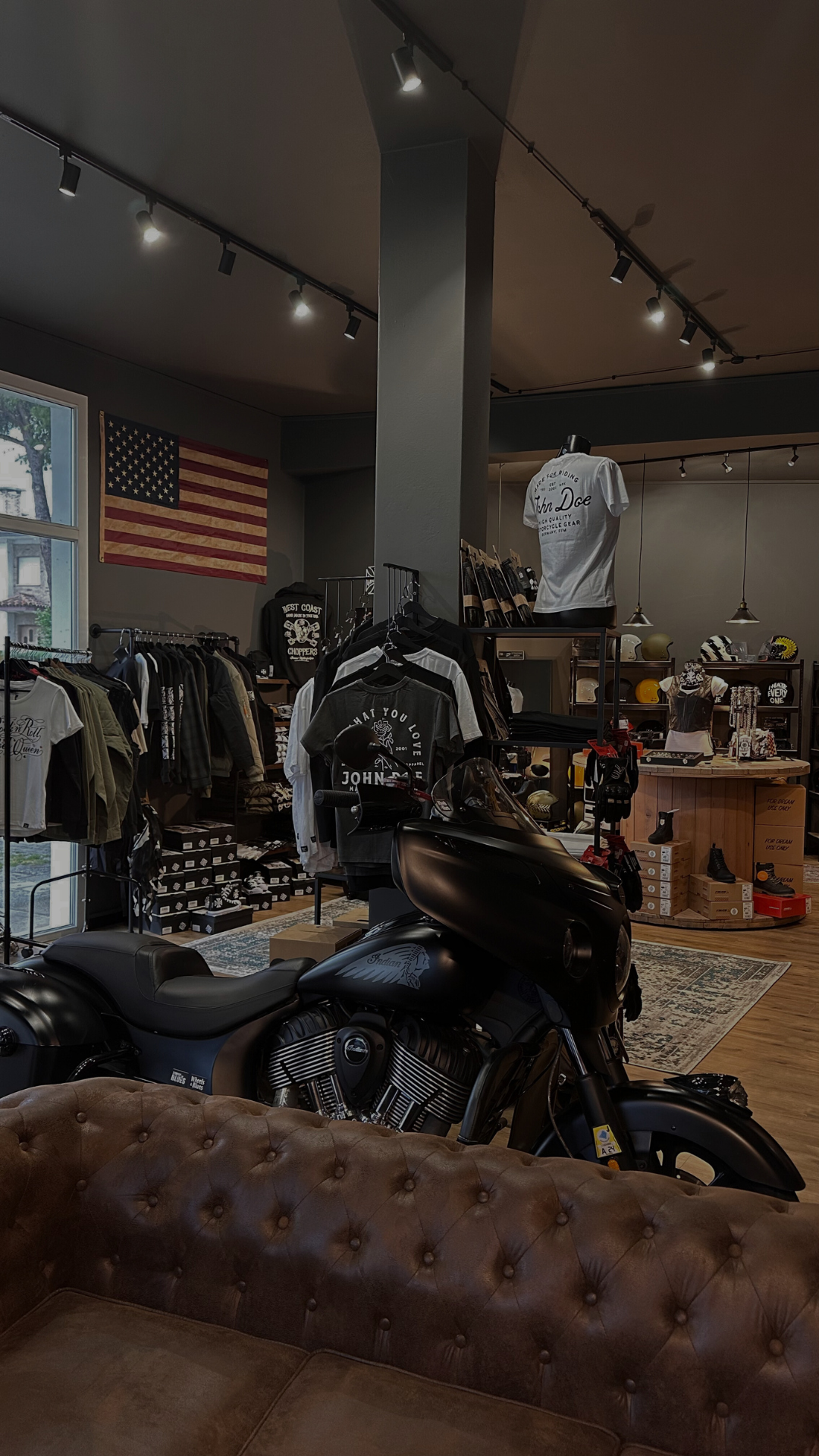 The prohibition-era atmosphere of the 1920s-30s, the dark tones, and the passion for motorcycle art make every visit an experience that goes beyond simple shopping.